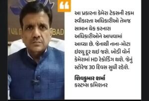 આવી પરિસ્થિતિમાં કોણ સાચું અને કોણ ખોટું તે જાણવું મુશ્કેલ બની જાય છે પરંતુ હવે એવું નહીં થાય કારણ કે હવે કસ્ટમ અધિકારીઓ પણ બોડી વોર્ન કેમેરાથી સજ્જ થયા છે. આ કેમેરા વિઝનથી લઇને ક્લિયર વોઇસ સુધી બધું જરેકોર્ડ કરી લેશે. દિવ્ય ભાસ્કરે કસ્ટમ્સ કમિશનર શિવકુમાર શર્મા પાસેથી આ અંગે માહિતી મેળવી હતી.