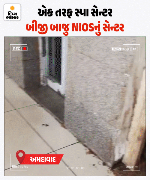 એક તરફ NIOSનું બોર્ડ, બાજુમાં સ્પાનું બોર્ડ અને તેની પાસે જ ગંદકીથી ખદબદતી કચરાપેટી. થોડા આગળ વધ્યા તો કાચનો મોટો દરવાજો દેખાયો જેના પર NIOS દ્વારા લેવાતી પરીક્ષા વિશે આકર્ષક રીતે લખ્યું હતું. તેમજ આ સેન્ટરમાં માર્ગદર્શન આપતું હોવાનો દાવો હતો.