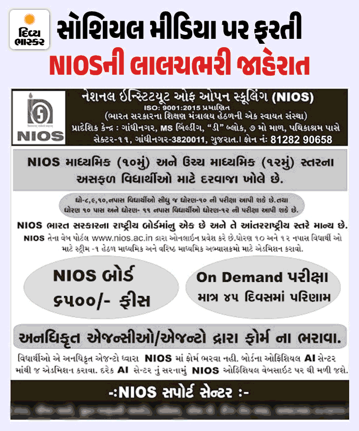 આ ઇન્વેસ્ટિગેશનની શરૂઆત સોશિયલ મીડિયા પરથી મળેલી એક જાહેરાતથી થઈ. જેમાં લખ્યું હતું…NIOSમાં એડમિશન લેવાની છેલ્લી તક. ધોરણ 10-12મા નાપાસ થયેલા કોઈપણ વિદ્યાર્થી માટે પરીક્ષાનું આયોજન થશે. તમારું અમૂલ્ય વર્ષ બચાવો. આ સાથે જ મોબાઇલ નંબર પણ આપવામાં આવ્યો હતો. તેમજ પાસ થવાનું ગેરંટી પણ આપવામાં આવી હતી.