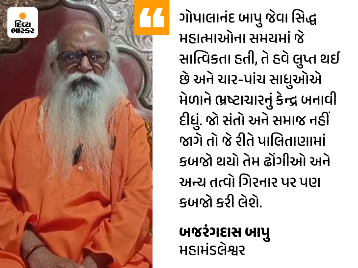 જો સંતો અને સમાજ નહીં જાગે તો પાલિતાણાની જેમ ગિરનાર પણ કબજો થશે અંતમાં, તેમણે કીર્તિ પટેલ અને ઇન્દ્રભારતીને આડે હાથ લેતાં ચેતવણી આપી છે કે ગિરનાર એ સાક્ષાત્ બ્રહ્મા, વિષ્ણુ અને મહેશનો રૈવતાચલ પર્વત છે. ગોપાલાનંદ બાપુ જેવા સિદ્ધ મહાત્માઓના સમયમાં જે સાત્ત્વિકતા હતી એ હવે લુપ્ત થઈ છે અને ચાર-પાંચ સાધુએ મેળાને ભ્રષ્ટાચારનું કેન્દ્ર બનાવી દીધું છે. તેમણે હિન્દુ પ્રજાને 2027 સુધીમાં જાગ્રત થવા હાકલ કરી છે અને જણાવ્યું હતું કે જો સંતો અને સમાજ નહીં જાગે તો જે રીતે પાલિતાણામાં કબજો થયો એમ ઢોંગીઓ અને અન્ય તત્ત્વો ગિરનાર પર પણ કબજો કરી લેશે.