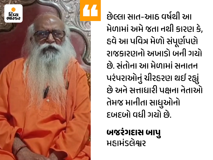 ‘પાસ સિસ્ટમ’ લાગુ કરી સંતોમાં ભાગલા પાડવાનું પાપ કર્યું મેળામાં વ્યાપેલા પક્ષપાત અંગે રોષ વ્યક્ત કરતાં બાપુએ જણાવ્યું હતું કે ભાજપના પદાધિકારીઓ અને હર્ષ સંઘવી જેવા નેતાઓની VIP ગાડીઓને અંદર જવા દેવામાં આવે છે, જ્યારે બહારથી આવતા સાચા સાધુ-સંતોને પોલીસ દ્વારા રોકી દેવામાં આવે છે. મોરારિ બાપુ કે રમેશભાઈ ઓઝા જેવા કથાકારોની ગાડીઓને પાસ મળે છે, પરંતુ જે ઉતારાવાળાઓ વર્ષોથી લાખો લોકોને ભોજન કરાવે છે તેમની પાસની વિનંતી કલેક્ટર દ્વારા ફગાવી દેવામાં આવે છે. આ પ્રકારની ‘પાસ સિસ્ટમ’ લાગુ કરી અધિકારીઓએ સંતોમાં ભાગલા પાડવાનું અને તેમને હેરાન કરવાનું પાપ કર્યું છે.