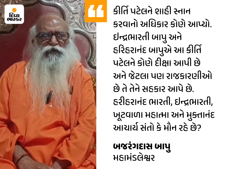 બજરંગદાસ બાપુ કીર્તિ પર બરાબરના બગડ્યા:કહ્યું- ‘અખાડાઓનું શાહી સ્નાન બંધ કરાવી ભગવાધારી સંસારીઓનું સ્નાન કરાવો’, લાગણીઓ દુભાતા ફરિયાદ નોંધાવી