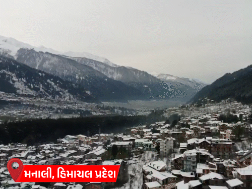 હિમાચલ પ્રદેશના મનાલીના ઘણા ભાગોમાં મંગળવારે હિમવર્ષા થઈ.