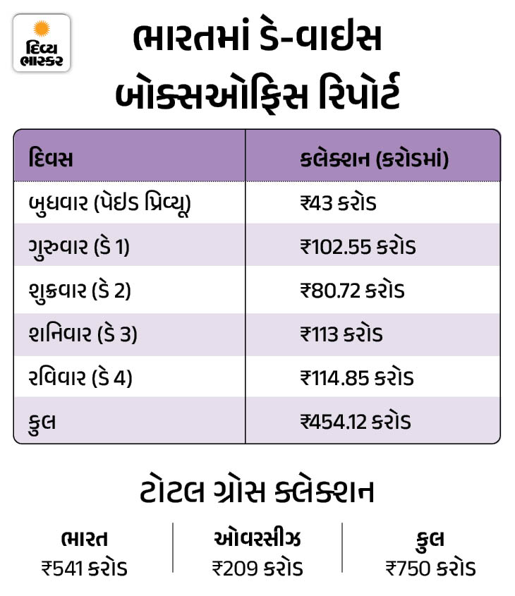 ચાર દિવસમાં વિશ્વભરમાં ₹750 કરોડની કમાણી
